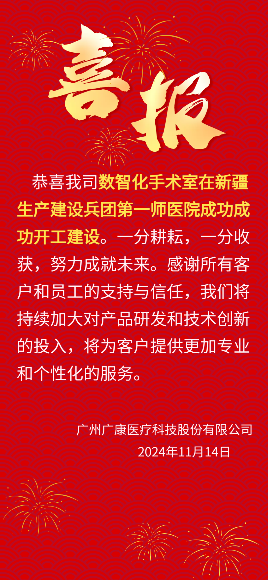 喜报!e院通数智化手术室在新疆生产建设兵团第一师医院成功成功开工建设!