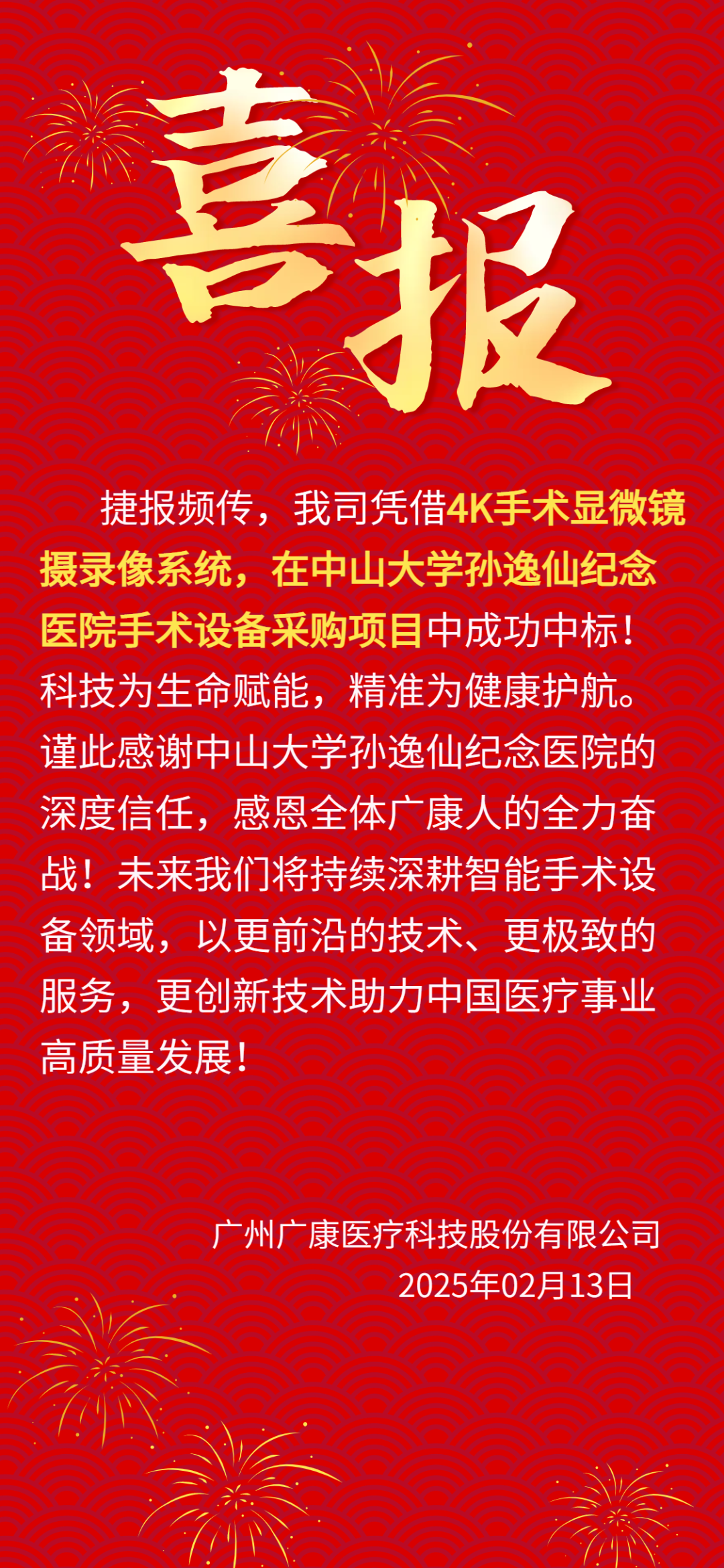 捷报频传|近日,广康成功中标中山大学孙逸仙纪念医院显微镜摄录像系统采购项目
