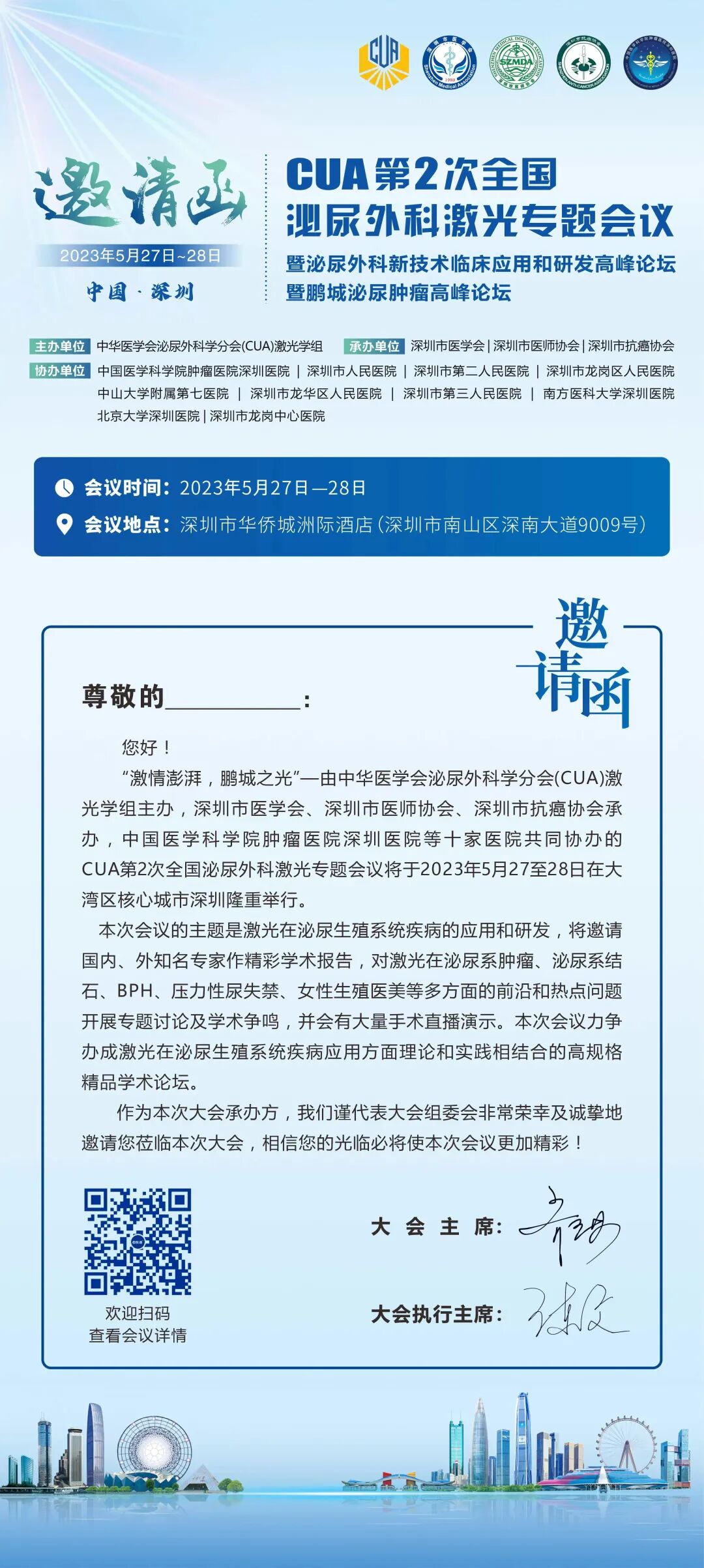 弹指一挥间,3年疫情肆虐,但这也未能阻挡住论坛传播交流学术的脚步。2022年,CUA全国泌尿外科激光第1次专题会议在武汉召开,大会结合形势,进行线上线下会议相结合,以线上会议为基础,线上观看量更是达到6万+。2023年,CUA全国泌尿外科激光第2次专题会议将在5月27日-28日于“鹏城”--深圳召开隆重召开。告诉我们疫情过后,玫瑰花海依旧盛开,传播交流学术的脚步也永不停歇。